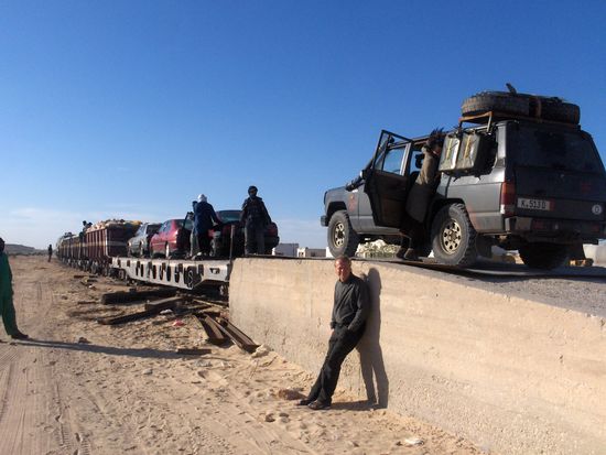 Ali war ein Tip von Luc, und er empfiehlt uns, das Fahrzeug auf den Erzzug (der längste der Welt) zu verladen, da wir ins Gebirge bei Atar möchten.