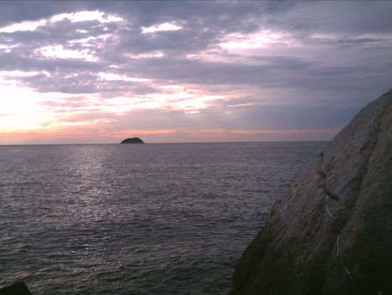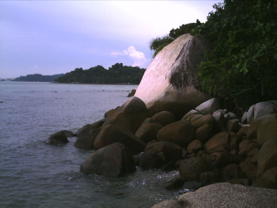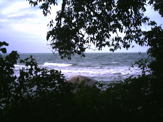 Am Nachmittag nach dem obligatorischen Strand-Bade-Event besteigen wir das oertliche Gebirge. Aus einer Hoehe von 20 Metern (oder etwas weniger ) kann man im Schatten ( und mit Ameisen ) auf das Meer hinaus traeumen und hat auch einen guten Blick auf die naechsten Inseln.
