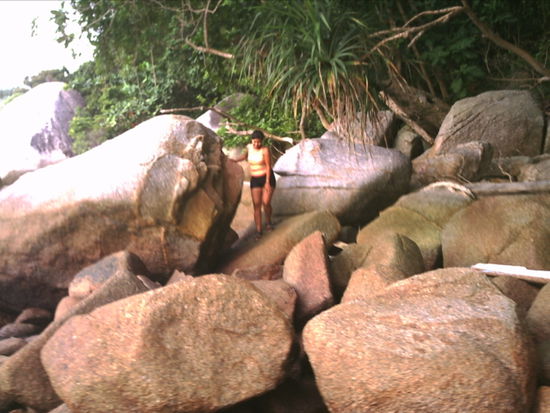 Rundherum gibt es Korallenbaenke, die aber leider minder-lebendig sind. Im Unterholz gleich hinter dem Strand mussten wir auch leider eine Plastik-Fabrik entdecken: Das Meer spuelt bestaendig leere Wasserflaschen an. Leider nimmt man es hier mit dem Umweltschutz nicht so genau, und was man nicht mehr braucht, wird oft einfach weg geschmissen. Aber trotzdem erscheint das Eiland sauber, weil sich der Muell sozusagen versteckt und meer-gereinigt ankommt ( also nicht stinkt ) Wir nehmen uns vor, einmal mit ein paar Freunden zurueckzukommen und aufraeumen.