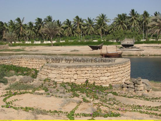 Zu allererst geraten wir an den brandneuen archäologischen Park des Frankincense Country in Al Baleed (17° 00,567' N // 54° 08,119' E), wo Karsten Ley (Institut für Stadtbaugeschichte an der RWTH Aachen) gebuddelt hat.