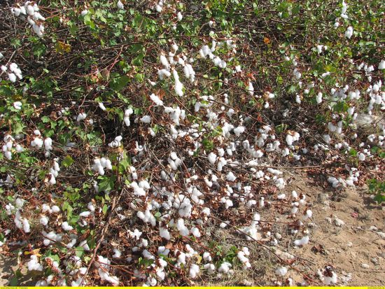 Die einzelnen Stationen sind gut beschildert und wir können so ganz nebenbei auch noch Fauna (ein grünes Reptil) auf Fauna (eine Art Fetthenne) bewundern. Selbst Baumwolle finden wir im Park.