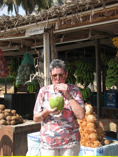 Danach suchen wir den Weihrauchsouk, wo allerdings die meisten Läden, ähnlich wie im Goldsouk auch, geschlossen haben. Man sagt uns, dass die meisten heute abend öffnen. Aber wegen der dreitägigen Feiertage scheinen die von Islamischen Händler geführten Läden geschlossen zu bleiben. Zum Einkauf landen wir in einer Art Großhandel, der Wasser usw. nur in Kartons verkauft. Der schickt uns ein paar Meter weiter und dort können wir unsere Wasser- und Getränkevorräte anlegen. Danach wollen wir im Schatten der Palmengärten unser Picnic machen und anschließend durch diese laufen. Wir suchen uns einen Platz, wo auch Seitenwege in die Gärten gehen und folgen einem der falajs.