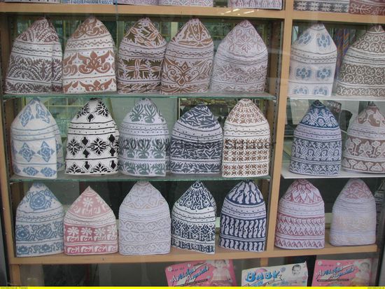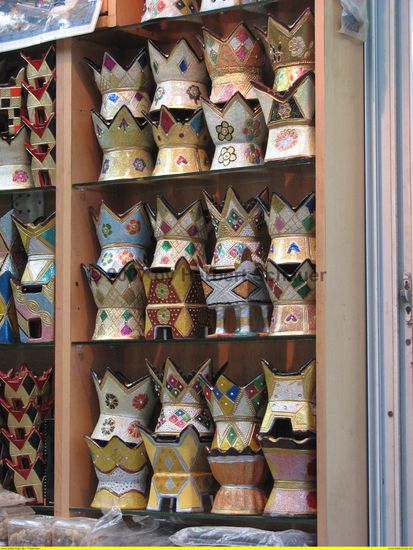 Die Karts rauschen an uns vorbei - mal kurz in die Grosse Moschee, ein Foto gemacht und weiter. Da brauchen wir schon länger (an jeder Station) dafür finden wir aber auch beschriftetet Grabsteine, verzierte Säulenstümpfe und andere Details. Daher ist es schon Mittagzeit mit einer Temperatur von 28°C, als wir den Park verlassen. Aber wir hatten ja unsere Mützen. Zurück im Alltag leisten wir uns zunächst eine Trinkkokosnuß, die herrlich erfrischt. Man kann sie sogar auslöffeln, aber Ulrike schmeckt das frische Kokos nicht so besonders.