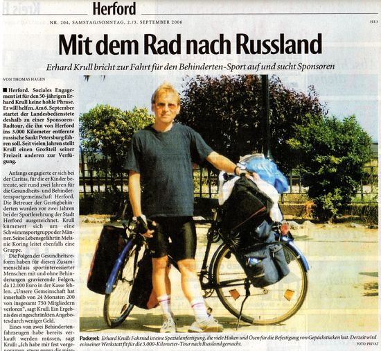 Sponsorenradfahrt von Herford nach St. Petersburg