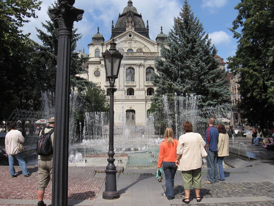Die Innenstadt wird sehr schön im alten Stil restauriert, Wasserspiele neben der Hauptkirche bilden ein attraktives Freizeitgelände und in den Nebenstraßen entsteht ein Kneipenviertel mit Atmosphäre. Da könnten die Touristen kommen! Ich entdecke sogar die Synagoge - verfallen wie in Czernowitz, aber dahinter ein karitatives Zentrum, das von jüdischen Gemeinden in USA unterstützt wird.