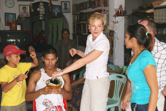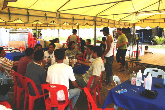Zu der Feier kommen alle Verwandten und Freunde,es gibt reichlich zum Essen und Trinken ,wie es bei den Thais so ueblich ist.Es ist ein kommen und gehen.Ein lautes und schoenes Fest.Denn ohne Musik aus riesigen Lautsprechern geht es nicht.