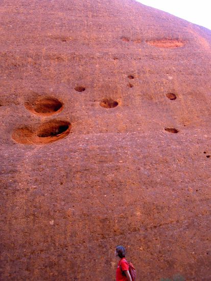 Als die Sonne ihren angestammten Platz eingenommen hatte, haben wir das Sakrileg begangen und den Uluru bestiegen und ich kann nur sagen: ES HAT SICH GELOHNT!!! Genaugenommen war der Aufstieg und der sich anschließende Ausblick, das schönste am ganzen Felsen! Nach vollbrachter Sünde (das Ding ist für die Aborigines heilig...) war es erst mittags, und wir beschlossen Kata Tjutan und das Valley of the Winds mitzunehmen.