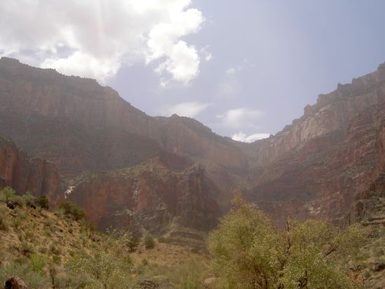 Gut erledigt von der Hitze kamen wir gegen 7 Uhr wieder am oberen Rand der Schlucht an, übernachteten noch und beschlossen am nächsten Morgen weiter zu zotteln. Eigentlich wollten wir noch eine Bootsfahrt auf dem Colorado River machen, aber als meine noch ziemlich verschlafenen Äuglein den Preis von geschmeidigen 169 Dollar sahen, war ich auf einmal hell wach und machte mich vom Acker.
