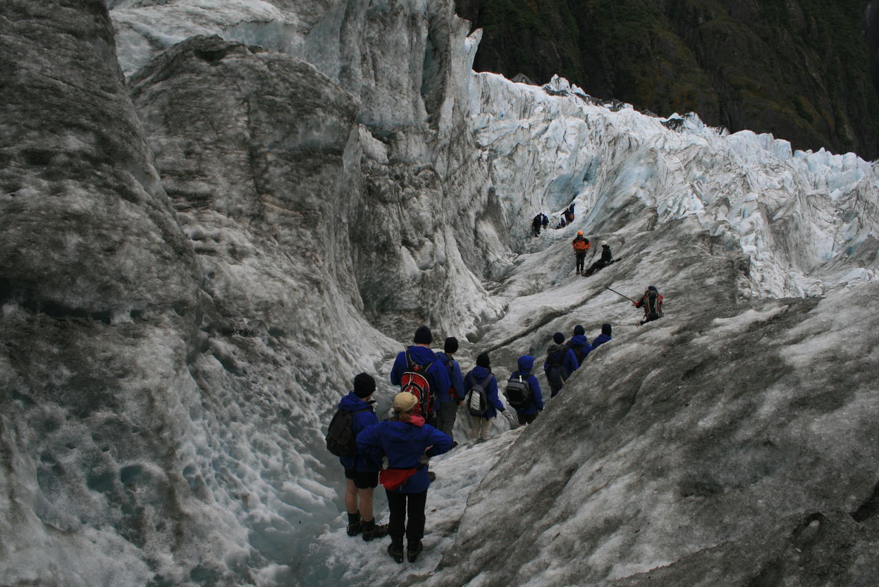 Also trafen wir doch beim Franz Josef Gletscher ein. Dieser Gletscher liegt gerade mal 200m ueber dem Meeresspiegel. Wir unternahmen eine sehr schoene und interessante Gletscherwanderung dort.