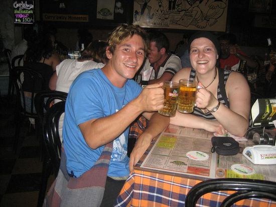 Seine Aehnlichkeit mit Einstein ist mit viel Fantasie und noch viel mehr Bier vielleicht nicht abzustreiten, doch er hat sowieso drauf bestanden. Die 2. Runde Bier konnten wir ihm gott sei dank wieder ausreden und den finanziellen Noeten des Proffessor Glauben zu schenken fiel uns auch recht schwer. Der alte Kauz war alles im allem recht witzig obwohl wir froh waren als wir wieder befreit waren.