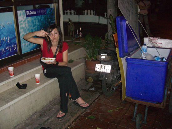 Nun zum essen, oh my god! eibfach fantastisch und nach unserem Erfahrungen egal was man isst, schmeckt fast immer super. wir haben auch ziemlich oft in den Hintergassen (so essen die meistens Thais, mobile Kuechen inrgendo zwischem Abgasnen und Strassernhaendler)gefuttert. Fuer 20 Baht kriegst man eine ganze Mahlzeit. Ok zwei -dreimal konnten wir nur erraten was wir jetzt in dieser Noodle -Chickensoup noch so alles verspeissen werden. Aber schnmeckt einfach klasse... und verdammt scharf!!