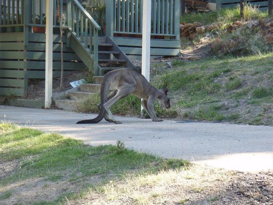 Hier gibt es gaanz viele wilde Tiere! Kaenguruhs und Wallabies habe ich vor allem in Halls Gap zur Genuege gesehen, die sitzen einfach auf der Wiese und futtern Gras und sind gar nicht so sehr scheu. Manchmal boxen sie auch untereinander.