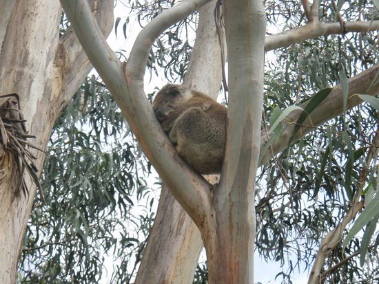 Die wild lebenenden Koalas, einen seht Ihr unten auf dem Bild selig schlummern, waren wie immer im Drogenrausch.