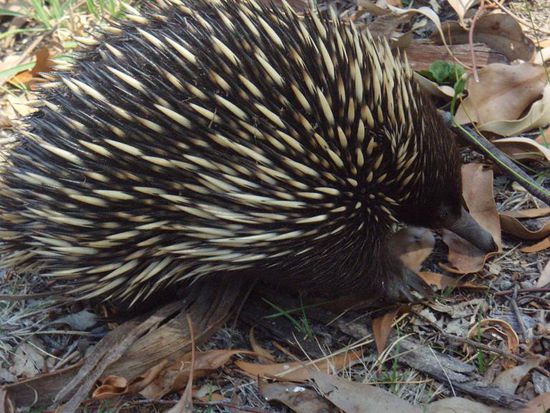 Ein exotisches Tier, das ich hier mehrfach gesehen habe, ist das Echidna, ein Saeugetier, das pro Brut ein legt und dieses in einem Beutel am Bauch ausbruetet.