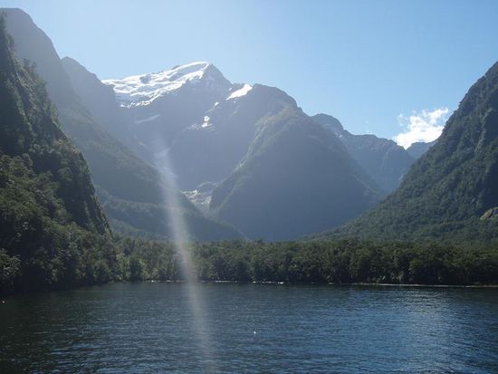 Von Queenstown aus ging es weiter nach Milford Sound. Milford Sound ist ein 15km langer Fjord, der durch Gletscherbewegungen in der Eiszeit entstanden ist. Er wird von 1200m hohen Felswaenden umgeben.