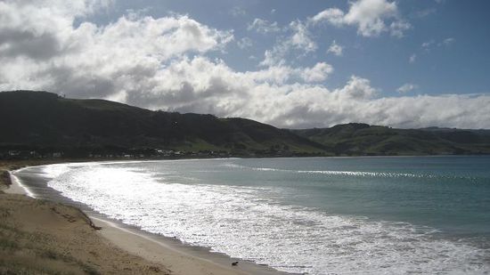 2. Apollo Bay, nettes Surferdoerfchen mit schoenem Strand. Der Englaender und der Ire liessen es sich nicht nehmen sich ein Bad im arschkalten Ozean zu goennen! Brrr...