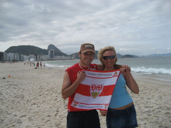 ein tip des hostel-besitzers: geht mal zu einem der grossen hotels an der copa(cabana) und fragt dort einfach. also, wir beide los (natuerlich MIT vfb-tuch) und gleich mal rein ins erste 5-sterne hotel. dort haben sie alles gegeben: in der zeitung geschaut, uns hoffnung gemacht, da es um 10.30 uhr tatsaechlich uebetragen werden sollte, doch dann leider vergeblich auf dem riesen plasma-fernseher, umgeben von weissen ledersesseln, den richtigen sender gesucht... ergebnis nach fuenf minuten: sie bekommen den sender nicht rein!!!