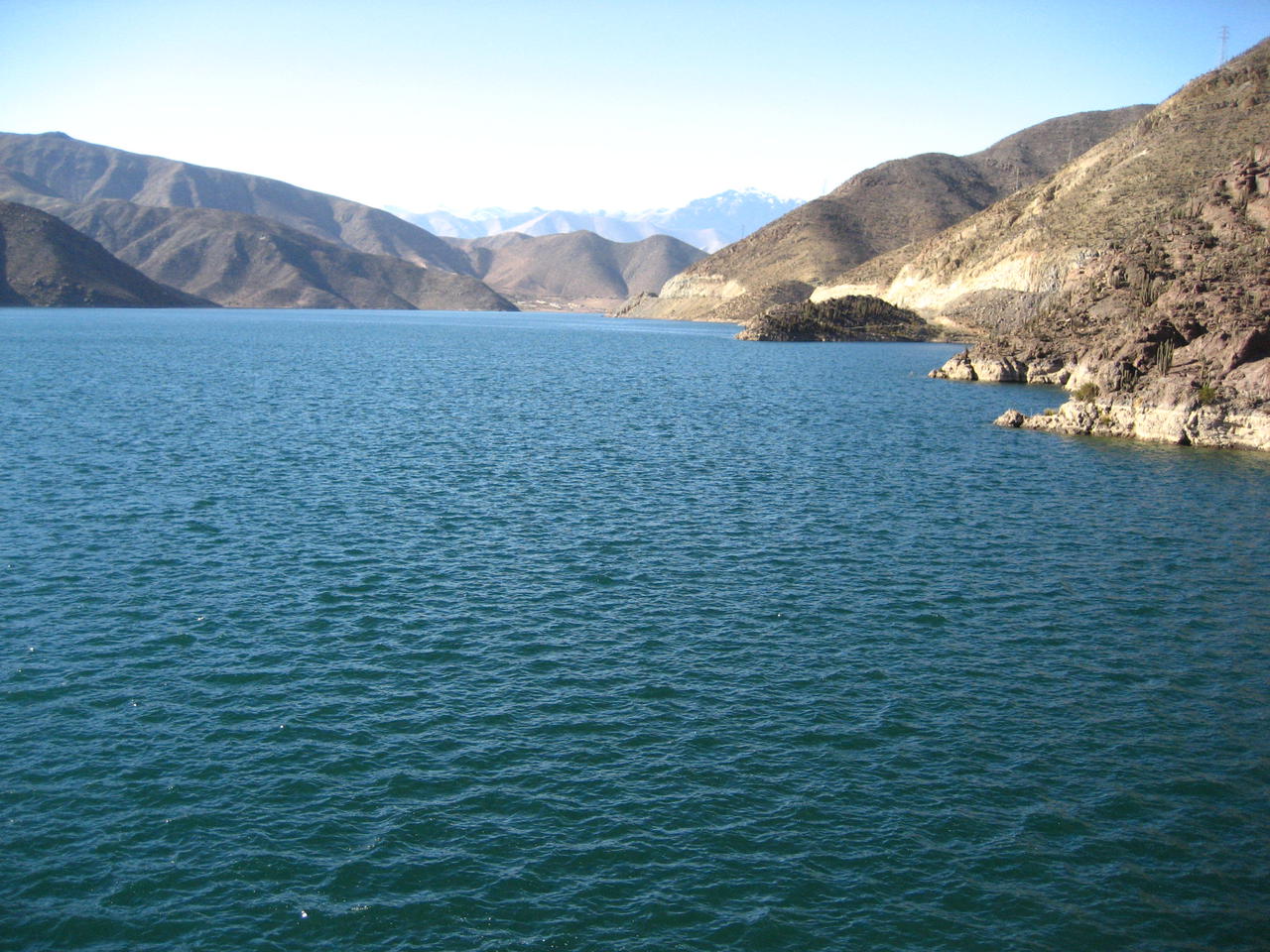 weiter ging es zum staudamm, der fuer das tal das wasser zur bewaesserung der felder liefert. aufgrund des erdbeben-gebietes am fusse der anden-auslaeufer musste die staumauer flexibel sein und den wassermassen stand halten, wenn die erde bebt. die linke seite der wand ist aus losem material wie schutt und sand, was verdichtet wurde. und rechts sind betonplatten, die mit gummi-dichtungen verbunden sind. wir liefen auf der staumauer herum und bewunderten den tollen stausee, dann gings auch schon weiter.