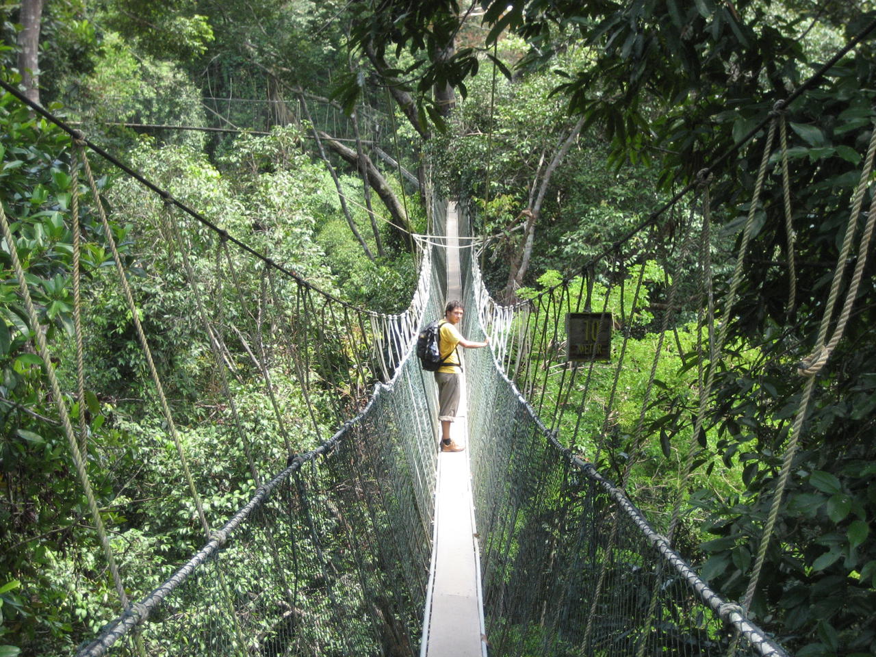 am naechsten morgen wanderten wir los und die wege rund um den canopy walk waren auch erstaunlich trocken und gut begehbar. der taman negara regenwald ist ein richtiger dschungel, genau das was man sich darunter vorstelt: dicht bewachsen, ueberall pfeift und zirpt es und die luft riecht wunderbar frisch.
