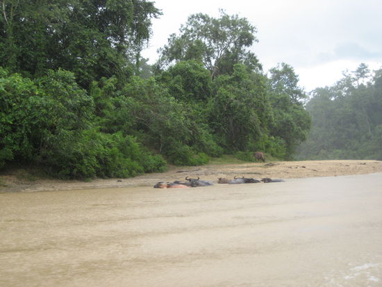 nach einer den ganzen tag dauernden anreise ins den nur 200 km entfernten nationalpark kamen wir endlich abends um halb sieben dort an. wir wurden mit dem boot 3 stunden hingeschippert, obwohl es zurueck dann mit dem minibus in einer stunde ging. naja, vielleicht gehoerte das schon zum dschungel-erlebnis...
