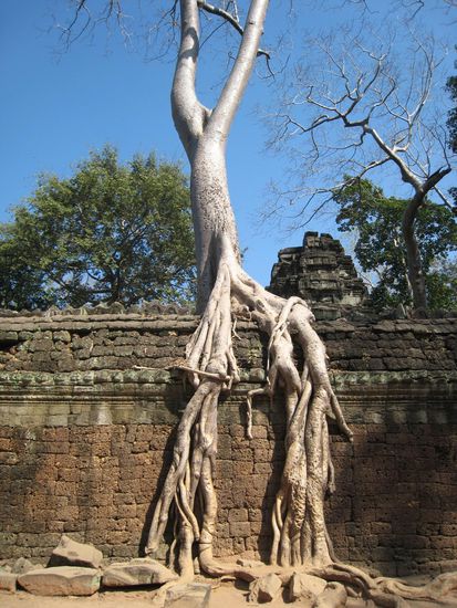 der eingang zu "ta promh", wo man einfach stundenlang in jedem winkel schauen kann, wie sich die natur die tempel zurueckholt.