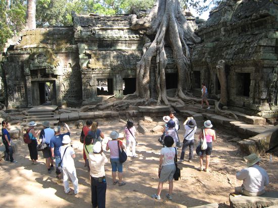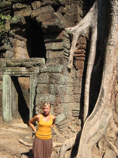 was uns wirklich umgehauen hat war der tempel "ta promh", wo seit jahrhunderten baeume und wurzeln ueber die tempelanlage wuchern. das sind fantastische fotomotive und man erlebt einen hauch der von uns erhofften mystischen atmosphaere.