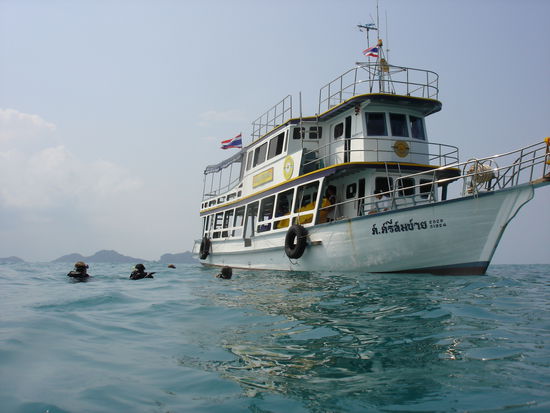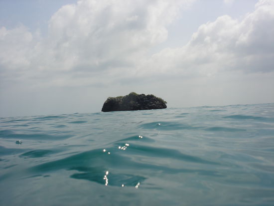 Und den ganzen Tag auf dem Boot - Zwei Tauchgaenge an und um einen grossen Felsen mitten irgendwo im Golf von Thailand rundrum nix als Wasser.