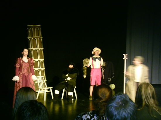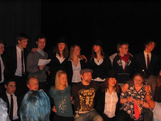 Nach vielen Proben in den letzten Wochen war Ende März Premiere angesagt. Da die Musiker auch auf der Bühne sitzen und alles rund um das Stück ja wie gesagt etwas abgefahren ist, wurde auch die Band aufgedonnert und geschminkt (inklusive Männer). Mein Cellokollege Volker (mit dem ich hier in Vaasa auch im Orchester spiele) musste sogar als sexy Krankenschwester auf die Bühne (meine Lieblingsszene