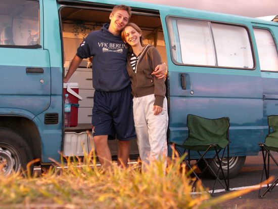 Nun fehlte uns also nur ein fahrbarer Untersatz um richtig mobil und unabhaengig zu werden. Also haben wir uns schon gleich am ersten Tag ein bisschen auf einem backpackers carmarket umgesehen...Schon das 2 Auto hat uns super gut gefallen, ein Toyota Hiace-riesiger blauer Van mit jeder Menge PLatz, volles Camping Equipment usw-88er Baujahr (ab wann gilt ein Auto als Oldtimer?? Aber wir wollten nichts ueberstuerzen und schliefen noch eine Nacht drueber. Am naechsten Tag sind wir dann noch mal zum carmarket,weil wir uns noch ein paar andere Autos angucken wollten, aber es zog uns immer wieder zurueck zu diesem einen auto...also sollte es wohl nicht anders sein, der deal war perfekt. der mechanische check war auch positiv und den preis konnten wir noch ein klein wenig senken. Nun konnte es also losgehen Die Hollaender, die uns das Auto verkauft haben waren auch super nett und haben uns bei allem moeglichen geholfen bevor ihr flug dann nach Hongkong ging...