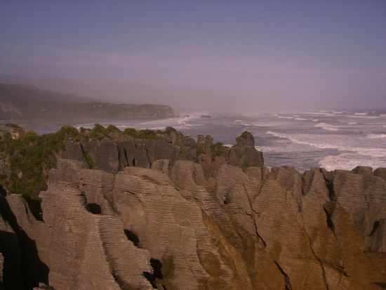 Ziemlich schwer fiel es uns mal wieder unsere Sesshaftigkeit in Nelson aufzugeben...In unserem Hostel haben wir uns pudelwohl gefuehlt und nette Leute getroffen. Aber nichts desto trotz, nun sollte die Westkueste erkundet werden. Zunaechst ging es von Nelson straight on nach Westport. Dank Daniels Tipp haben wir dort am Cape Foulwind einen der -bisher- schoensten wild Schlafplaetze gehabt ueberhaupt. Nah am Meer, Wellen ueber Wellen und WEIT UND BREIT NIEMAND!!!Von dort aus ging es dann die Westkueste entlang zu den Pancake Rocks bis eigentlich zum Franz Joseph Glacier. Nur kamen wir leider nicht bis dahin...1h vorm Franz Joseph mussten wir an einer(ziemlich langen) One way Bridge halten und pleotzilch krachte es...uns war jemand reingefahren... eine Asiatin im Nissan Micra.