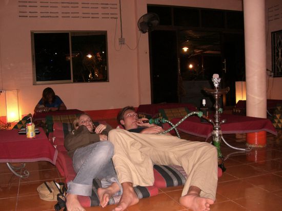 Ein letztes dinner in unserem Lieblingsrestaurant Cozy Corner. Super entspannte Atmosphaere, man konnte sich richtig wie zu hause fuehlen. Filme gucken, wenn man lust hat(natuerlich das aktuellste vom aktuellen-auch wenn die Untertitel der Brueller waren-Thai like),musik hoeren und gemuetlich Shisha rauchen!
