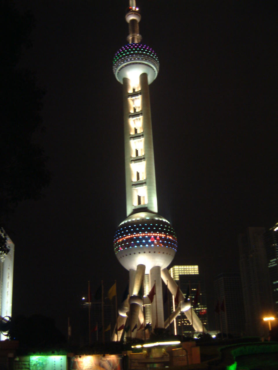 Von der Nanjing-Road ging die Fahrt weiter zum "Bund", der Uferpromenade des Huangpu-Flusses (Mündungsgebiet des Yangtses). Wir fuhren vorbei an wunderschön beleuchteten Hochhäusern, am Fernsehturm und natürlich am Hyatt-Hotel, das in der 48. Etage untergebracht ist und die obersten Etagen bis zum 88. Stockwerk belegt.
