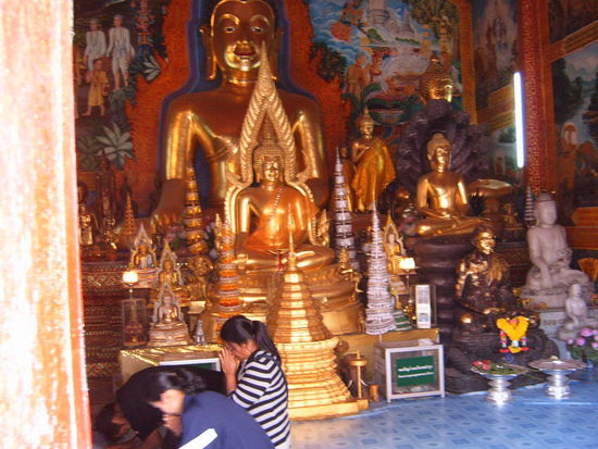 Ich habe mir von einem Priester ein Gluechsbaendchen geben lassen, welches abfallen muss. Das kann bis zu einem Jahr dauern. Thailaender stehen auf Glueck / hier im Tempel gibt es Lotterie und es geht zu wie auf dem Jahrmarkt. Nicht gerade heilig..