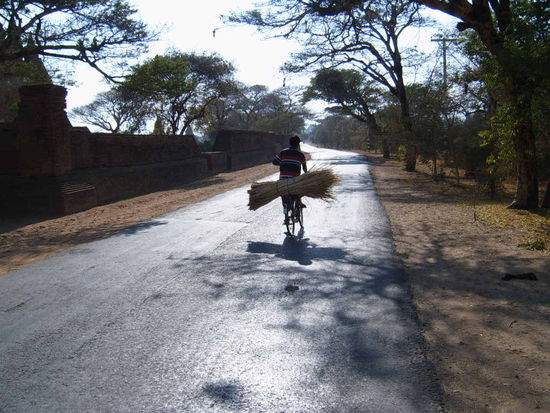 Wir leihen uns am 1. Tag in Mandalay ein Fahrrad. Dauernd hat meins einen Platten! Aber kein Problem. Es gibt Stellen, da flicken sie dir den Reifen in 10 min. Dahin gehe ich dann auch. Dennoch spaeter geht die Luft wieder raus. Der Reifen ist schon x-mal geflickt.Wir umrunden den Palast. Das dauert seine Zeit.