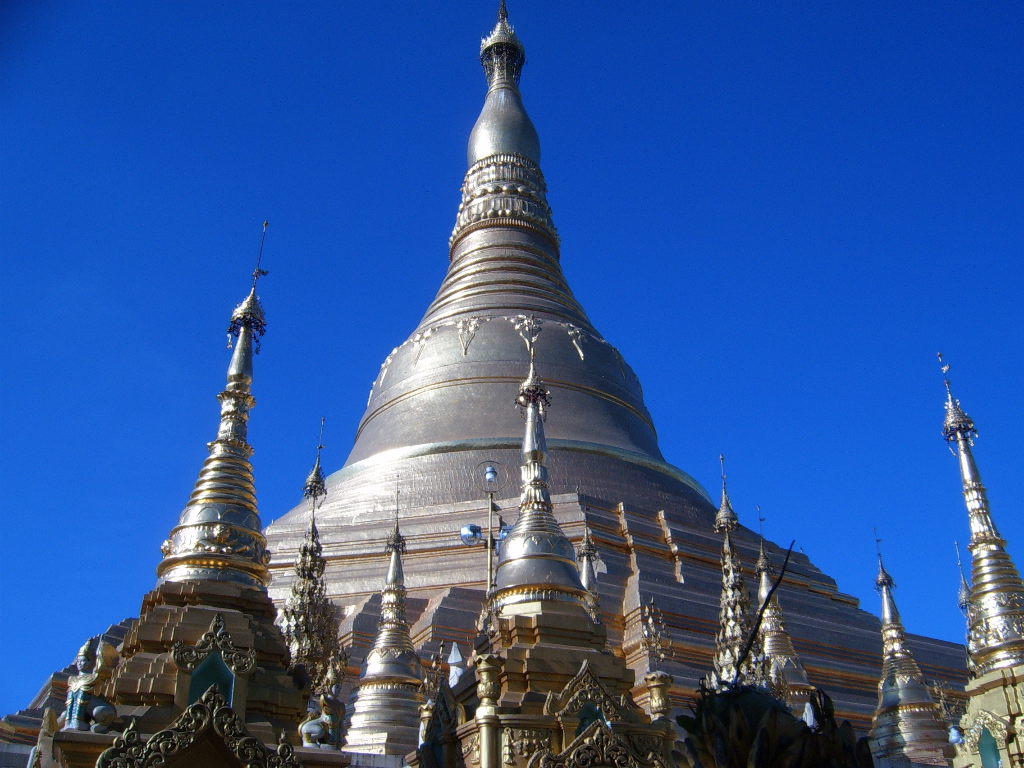 die beruehmte Shwedagonpagode. 61 kg Gold liegen da auf dem Dach. Viele Diamanten saeumen die Spitze. Unglaublich. Wirklich beeindruckend.