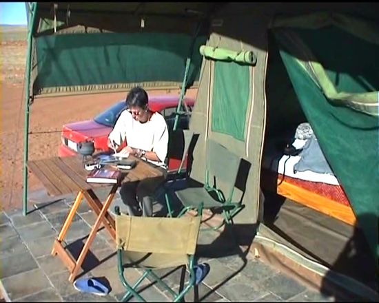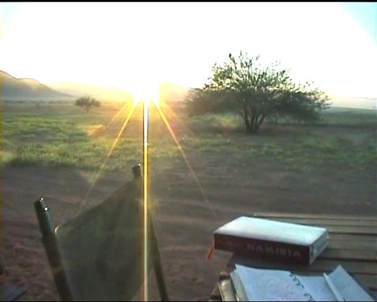 Währenddessen schreibe ich Bordbuch der letzten beiden Tage, denn man kommt hier ja zu nichts. 6.20 Uhr erscheint die Sonne hinter den Naukluft-Bergen und sofort wird es wärmer.