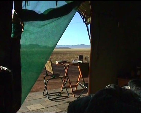 Das muß ich aufnehmen. Kurz vor 6.00 Uhr stehe ich auf, setze mich auf die Zeltterrasse und warte auf den Sonnenaufgang.