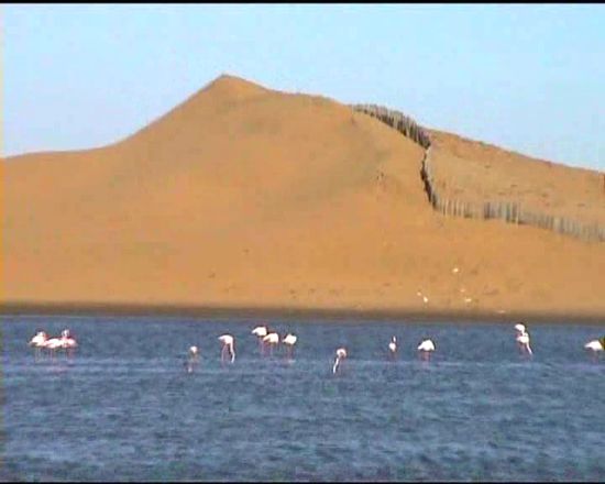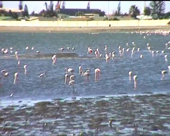 Bis Walvis-Bay ist die Strecke dann recht eintönig, das ändert sich dann schlagartig bei schilfumrandeten Lagunen mit hunderten Flamingos und anderen Vögeln. Erstere stehen auch in dem meerseitigen Flachwasser an der schönen Strandpromenade.