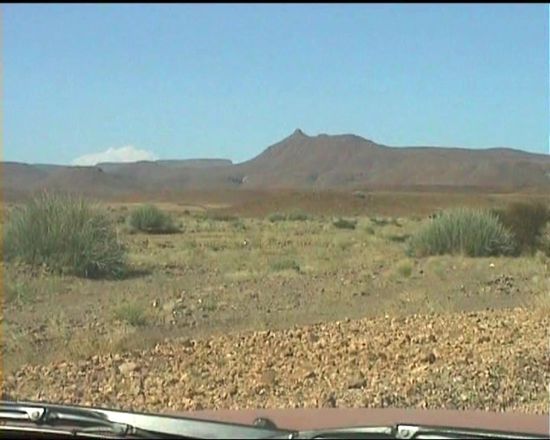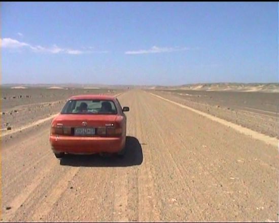 Die 100 km bis Torra Bay sind absolut stinklangweilig bis Christel ohne Abbremsen in ein Sandloch fährt - mit Schreien meinerseits. Der Sand spritzt über die Windschutzscheibe bis aufs Dach, als ob wir uns im Sand vergraben wollten. O Wunder, es ist nichts passiert.