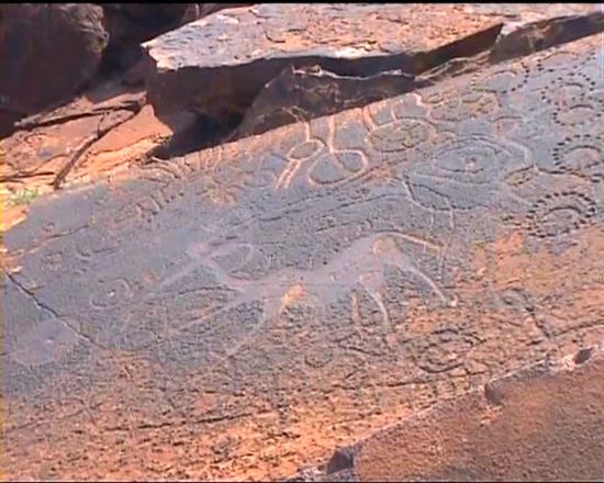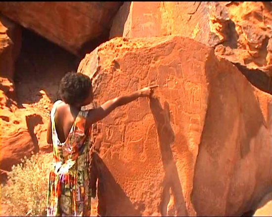 Sie führt uns mit wenigen englischen Erklärungen über Stock und Stein zu tollen Felsgravuren und Felszeichnungen, die man selbst kaum finden würde.
