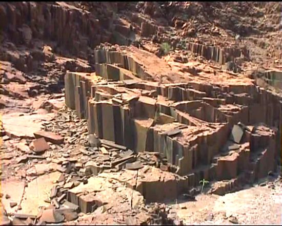 fünfeckig - die besondere Form der Basaltsäulen - es gibt sie auch an der Nordküste Nordirlands als 'Giants Causeway'