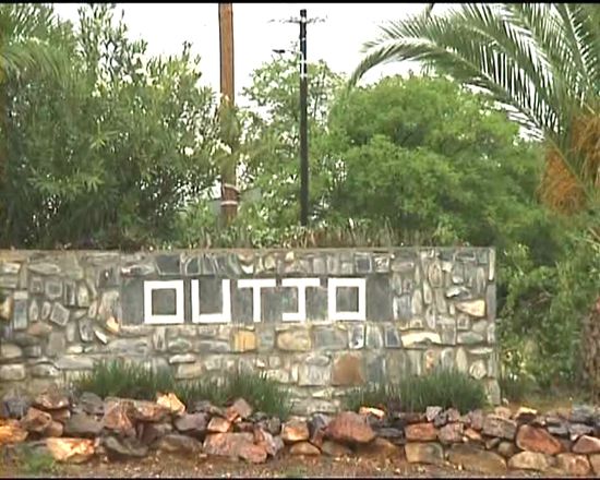 Diesmal probieren wir auch biltong (Getrocknetes Fleisch) - nichts für Kronen- Brücken- oder Gebißträger, aber sehr lecker. Für unsere fleischfressende Ulrike ist biltong jedoch genau das Richtige, wie überhaupt die Fleischportionen in Namibia überzeugen. In Ouitjo regnet es leicht, aber wir machen trotzdem eine kleine Autobesichtigung (2 Kirchen!).