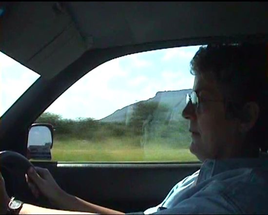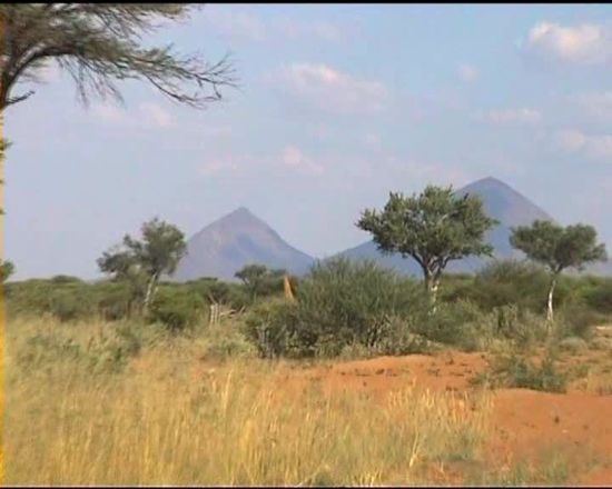 Der 48 km lange Tafelberg ist Naturreservat, in dem man wandern kann. Aber wir haben mal wieder keine Zeit. 80 km Teerstraße mit weniger interessanter Landschaft nutzt Ulrike zur nachmittäglichen Ruhe. Viel zu früh kommt der Abzweig auf die Piste, Christel macht eine Vollbremsung, Ulrike wacht auf, ich übernehme das Steuer. Einzelne Kegel ragen aus der Ebene heraus, später passieren wir dann auch weitere Tafelberge. Erst in Kalkrand erreichen wir wieder eine Teerstraße.
