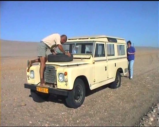Um 8.00 Uhr werden wir in einem 64er Landrover zur "Pomona-Bogenfels-Tour" abgeholt. Günther, unser deutschsprechender Fahrer hat das Ehepaar Goebel, das ich gestern schon in der Stadt getroffen habe, bereits abgeholt.