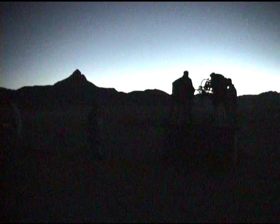 Am Camp angekommen ist dort die Sonne schon hinter dem Bergrücken verschwunden, so daß es erträglicher wird als die 37°C tagsüber. Duschen, ein Bier auf der Terrasse und wir drei unterhalten uns über die Probleme der Versorgung eines solchen Camps. Christel: "Vielleicht bringen die die Lebensmittel mit dem Luftballon!".