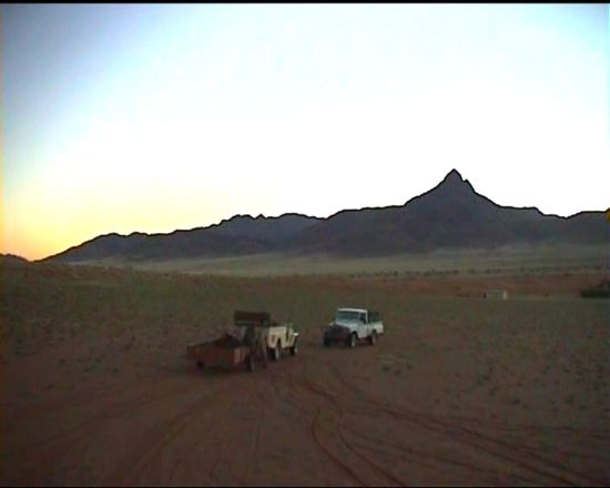 Leider haben wir ganz wenig Wind und den auch noch aus der falschen Richtung. Mit viel Glück hätten wir über ein oder zwei Dünenrücken in ein dahinter liegendes Tal fahren sollen. Noch schlechter aber wäre Westwind, der uns in die Naukluft-Berge getrieben hätte.