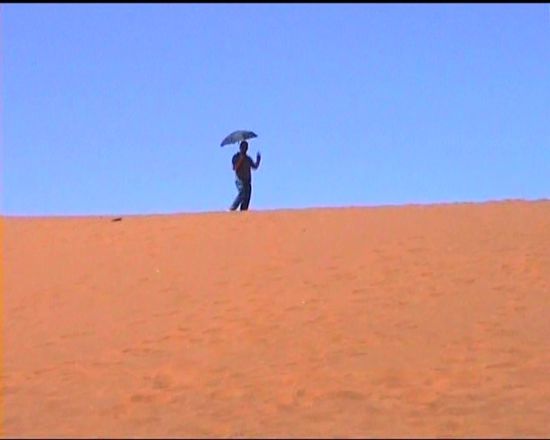 Ich laufe zum Gaudi von ein paar anderen Touristen mit Regenschirm als Sonnenschutz herum; hat sich allerdings durchaus bewährt.