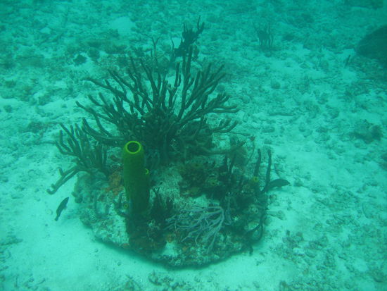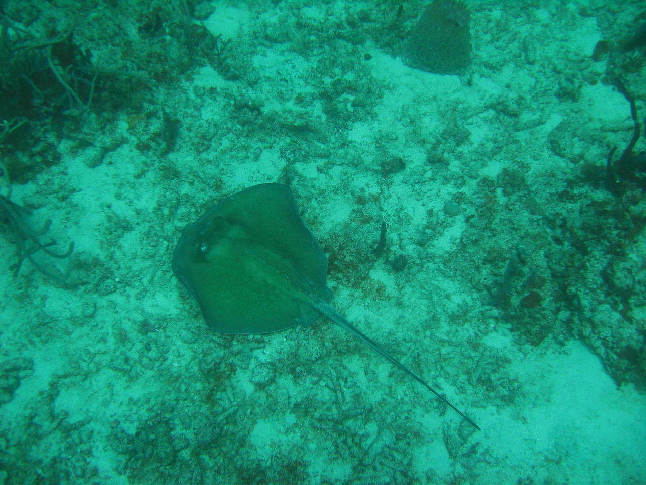 Aber eigentlich warteten wir nur auf die Schildkröten. Die kamen aber leider gerade nicht vorbei. Kurz vor Ende des Tauchgangs wurden wir dann aber durch das Treffen mit einem Amerikanischen Stechrochen entschädigt.