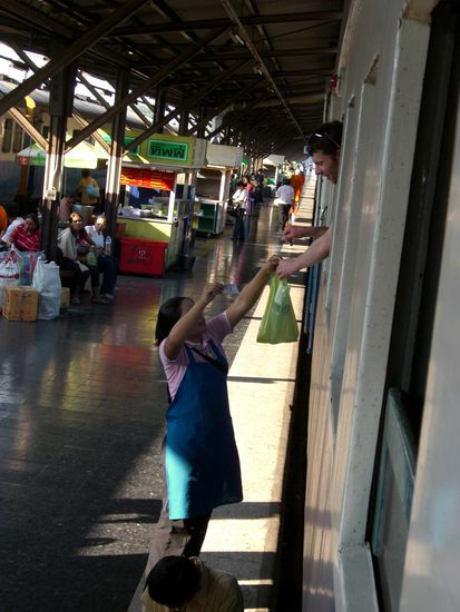 Die Zugfahrt hat schon auf Grund ihres Preises ueberzeugt: 30 Bath (80 cent) fuer Lars und mich zusammen!