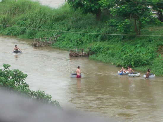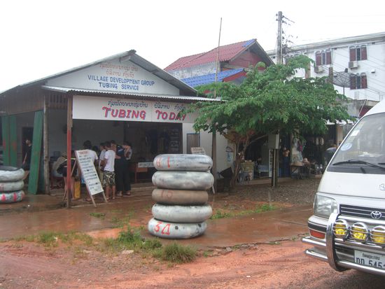 Ohne Schlaf stuerzten wir und sogleich ins Abenteuer Tubing. Das ist ein alter LKW Reifen auf dem man einen Fluss runter faehrt. Zwischendurch gibt es immer wieder Bars und kleine Europaparks. Aus Holz gebastelten Sprungtuerme konnte man sich waghalsig ins kalte Nass stuerzen.